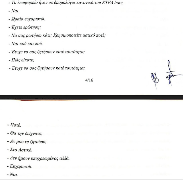 η Πρόεδρος του Δικαστηρίου, ακροάται τον αστυνομικό που συνέλαβε τον οδηγό. Τον ρωτάει "γιατί συλλάβατε τον οδηγό του ΚΤΕΛ;". Ο αστυνομικός απαντά "επειδή δεν έλεγξε τις ταυτότητες των επιβατών". Οπότε η Πρόεδρος, που έχει καταλάβει ότι πρόκειται για τακτικό δρομολόγιο συγκοινωνίας, ρωτά τον αστυνομικό: "σε αστικό ανεβαίνετε κ.αστυφύλακα;". "Ναι", απαντά ο αστυνομικός. "Σας ζήτησε ποτέ ο οδηγός ταυτότητα;".