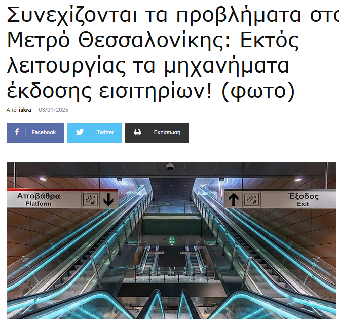 Στο ίδιο κλίμα και τα ΜΜΕ της πόλης (κι όχι μόνο!), που αντιλαμβάνονται το μέγεθος του προβλήματος, που δεν απαλύνει η θεωρία της "παιδικής ασθένειας", καθώς έχουν περάσει 33 μέρες από την εμπορική λειτουργία του Μετρό και τα εκδοτικά .....ΔΕΝ !